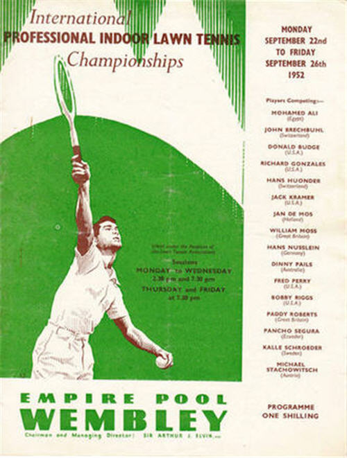 In November he played at the Pro Tournament at Lyon to be beaten  by Gonzales but not before he had taken the first set 3/6, 6/1, 6/2.  He also played Riggs in Switzerland taking a set off him also.