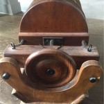 Just like the 1928 Craven racquet above, the rod like device is tightened from the handle and the string tension is adjusted.